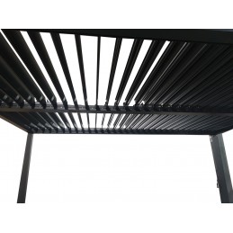 Gazebo pergola cubo misura 3x3 di colore antracite, con telo bianco scorrevole.