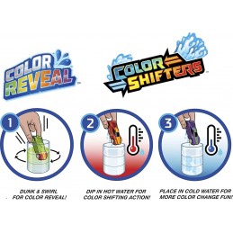 Dato che ogni macchinina è ricoperta da un rivestimento Colour Reveal, la scoperta del colore è arricchita da suspense e divertimento! Usa la confezione riutilizzabile a forma di barile come una vasca per l'immersione, riempiendola con acqua e facendo turbinare la macchinina all'interno. Guarda l'acqua cambiare colore e nuove decorazioni apparire su ciascun veicolo!