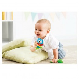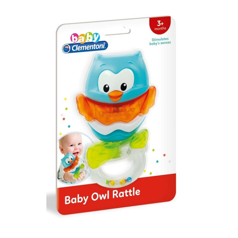 Un allegro e simpatico sonaglino a forma di gufetto con tante attività meccaniche e parti in plastica morbida tutte da mordicchiare!