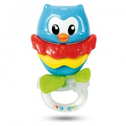 Un allegro e simpatico sonaglino a forma di gufetto con tante attività meccaniche e parti in plastica morbida tutte da mordicchiare.